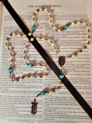 - 2 – 6mm Tibetan Silver plated bead caps on all Our Father beads