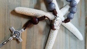 The word rosary comes from Latin and means a garland of roses, the rose being one of the flowers used to symbolize the Virgin Mary. If you were to ask what object is most emblematic of Catholics, people would probably say, “The rosary, of course.” We’re familiar with the images: the silently moving lips of the old woman fingering her beads; the oversized rosary hanging from the waist of the wimpled nun; more recently, the merely decorative rosary hanging from the rearview mirror. However you decide to use it, the Amber Our Lady Undoer of Knots rosary is a perfect addition to your rosary collection.