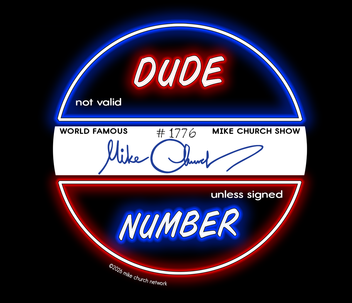 This re-imagined for the MAGA Era Dude, the all new Dude Number “Old 26” design was handcrafted and drawn by The KingDude himself! Featuring a full-color rendering of the now famous Mike Church Show microphone the design screams All American Talk Show Fan! Now, for the first time the Dude Number T-Shirt is 2 sided so America-hating single cat-lady white women will see your Red White & Dude Nation pride coming and going!