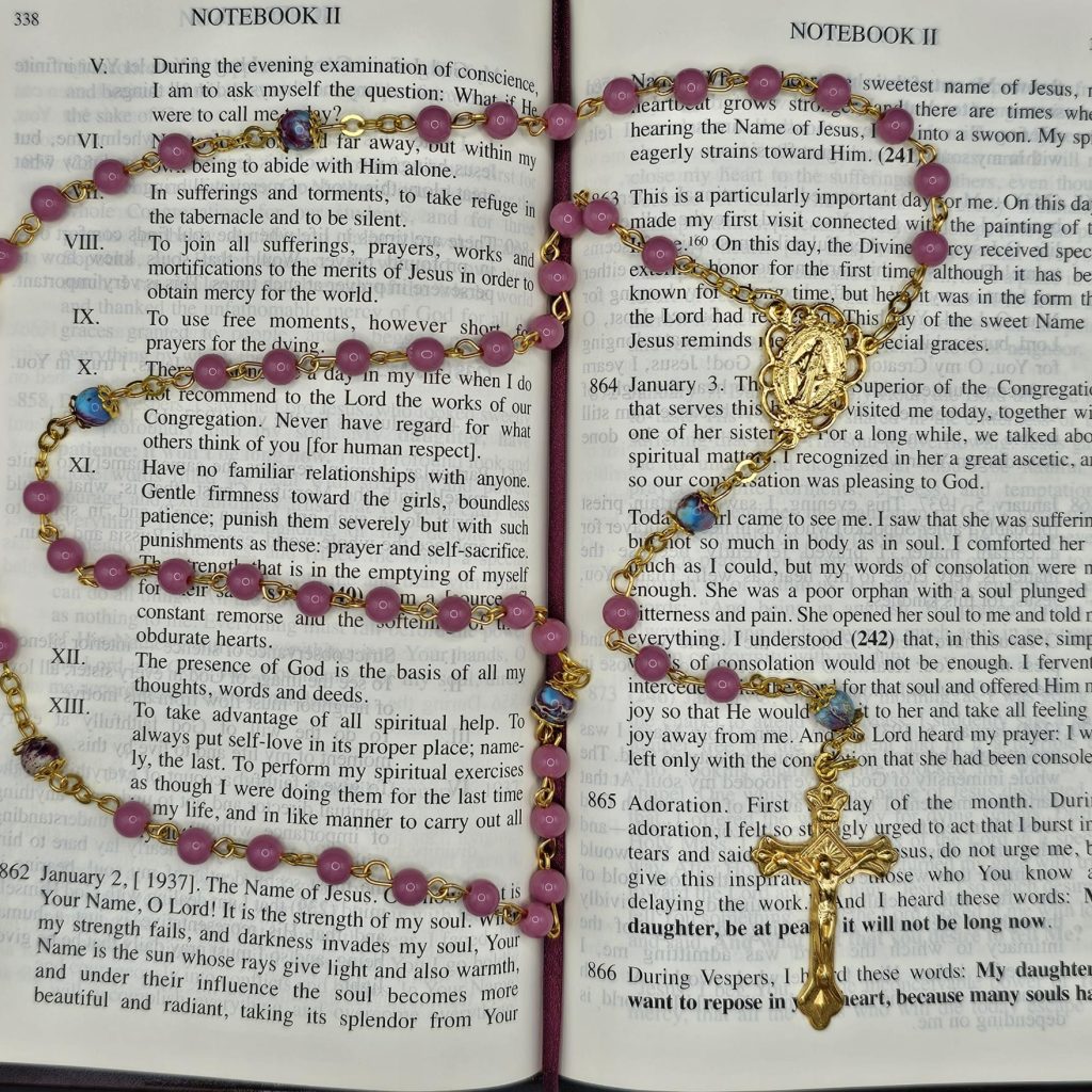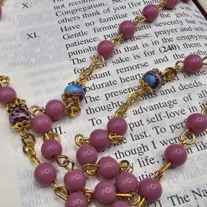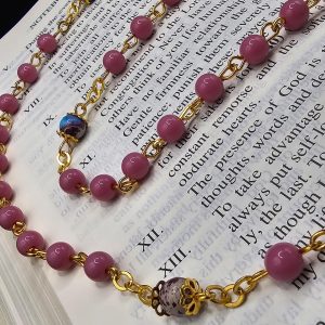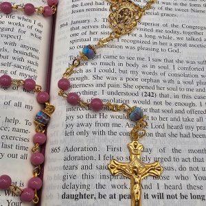 The word rosary comes from Latin and means a garland of roses, the rose being one of the flowers used to symbolize the Virgin Mary. If you were to ask what object is most emblematic of Catholics, people would probably say, “The rosary, of course.” We’re familiar with the images: the silently moving lips of the old woman fingering her beads; the oversized rosary hanging from the waist of the wimpled nun; more recently, the merely decorative rosary hanging from the rearview mirror. However you decide to use it, the Amber Our Lady Undoer of Knots rosary is a perfect addition to your rosary collection.