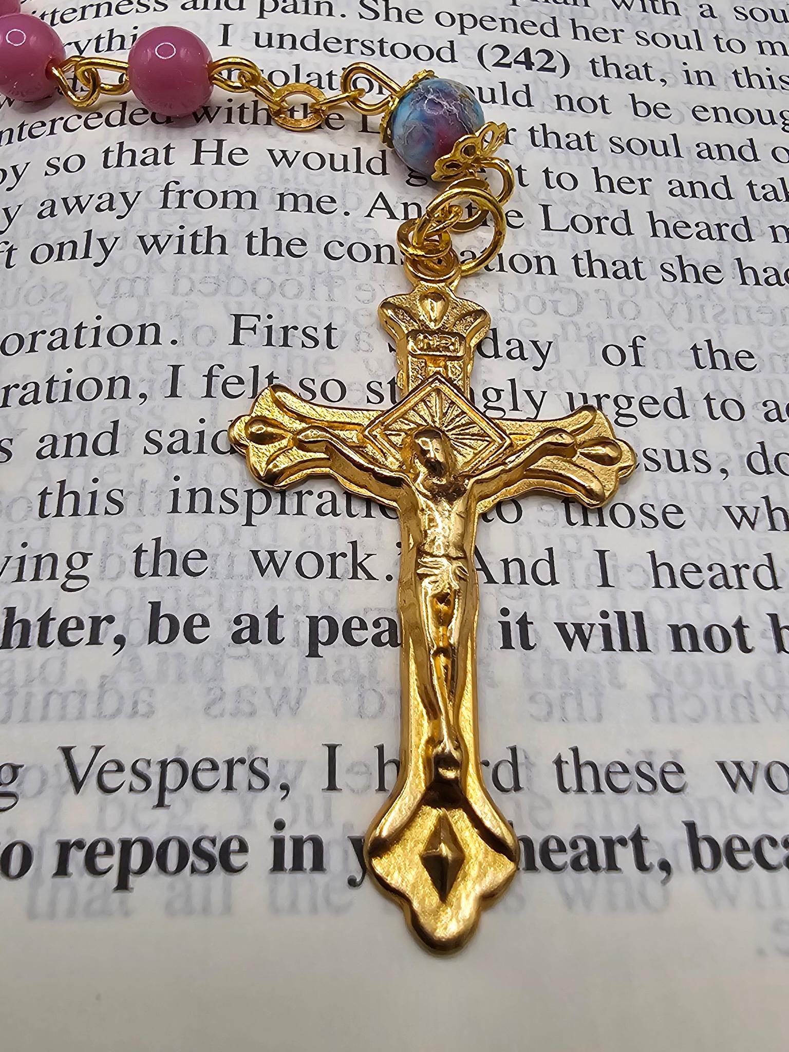 - Gold plated bead caps on all Our Father beads of this rosary